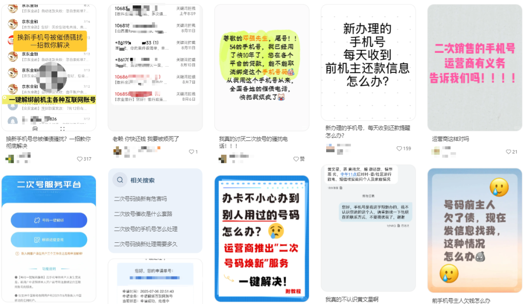 某位网友表示,他的手机号码已经用了快10年了,可仍在不断收到前机主在各个平台的贷款信息,不管是跟来电方解释,还是设置电话拦截,甚至打人工客服都解决不了这个问题;另一位网友称,自己年初新办的号码,竟然收到了某服务商发来的未支付的车费信息,但他都没来得及用这个号码登录该APP,更别提使用它了;还有网友吐槽,他用新号码注册社交软件时,竟意外进入了前机主的家族群,面对一群素不相识的亲戚,场面一度十分尴尬……这些层出不穷的案例,让人们对二次放号带来的种种问题忧心忡忡。
