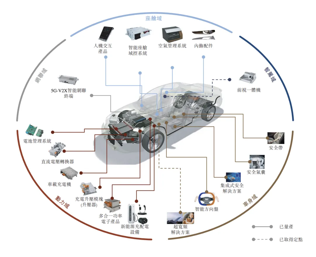 其中,汽车电子解决方案主要包括汽车智能解决方案、新能源管理系统解决方案和人机交互产品;汽车安全解决方案则主要提供安全气囊、安全带、智能方向盘和集成式安全解决方案。营收上看,2022 年以来公司汽车安全业务恢复增长,汽车电子业务则长期稳健。
