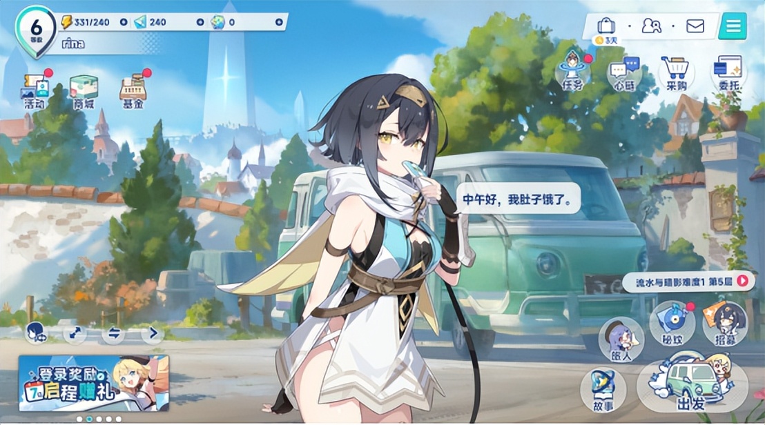 不过该游戏的UI设计十分优秀。打开《星塔旅人》的瞬间,标志性的日式赛璐璐画风便扑面而来,游戏以蓝白为主色调,搭配低饱和度的粉、绿等辅助色。所有按钮都采用圆润倒角处理,弹窗边缘的柔和曲线消解了机械感,整体简洁清爽。