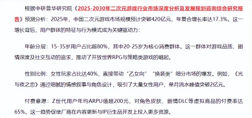 国内副游赛道是一片看似蓝海的红海。2025 年国内二次元市场规模预计突破 420 亿元,却鲜有成功的国产副游案例。