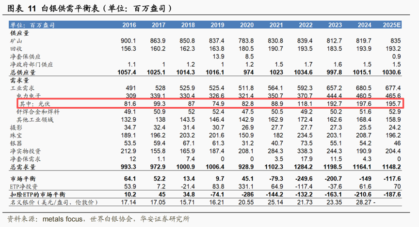 根据华安证券的研报显示,在光伏行业大爆发的2021年前,白银供需一直处于“紧平衡”状态,但2021年后需求大幅超过供给.