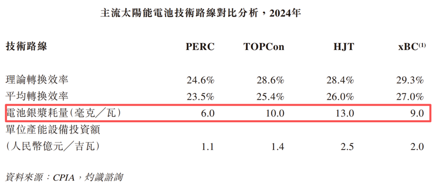 日御光伏的招股说明书显示,2024年,无论是TOPCon、HJT还是BC技术比传统的PERC技术相比,银浆消耗量都是大幅提升,此外双面组件的出现也会将需求继续抬高,甚至于备受关注的钙钛矿叠层技术也需要银浆导电。