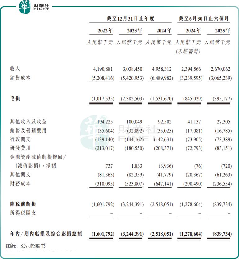 2022年至2024年及2025年上半年,公司分别产生亏损16.02亿元、32.44亿元、25.18亿元及8.4亿元。三年半时间,公司累计亏损高达约82亿元。