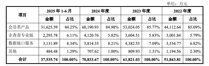 2022年至2024年,企查查收入分别为5.18亿元、6.18亿元、7.08亿元,年复合增长率16.89%。2025年上半年,公司收入3.75亿元。