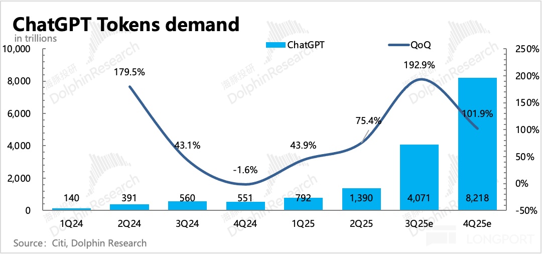 虽然市场认为博通的不确定性最高,毕竟合作细节披露得最少。但海豚君认为,产业链中 CSP 与 GPU 芯片巨头之间利益博弈,比如英伟达直接绕过 CSP 与下游客户 OpenAI 签直供合同,等于是要把 CSP 大厂们排除出利益链条外,这必然会加速 CSP 自研 ASIC 芯片的进程。而博通通过多年与谷歌 TPU 的合作,这套程序已经相当熟练,毫无疑问是受益。虽然从目前来看,OpenAI 暂时还不急于依赖 ASIC 的算力,但自研芯片正是渗透到 CSP 的后一步。