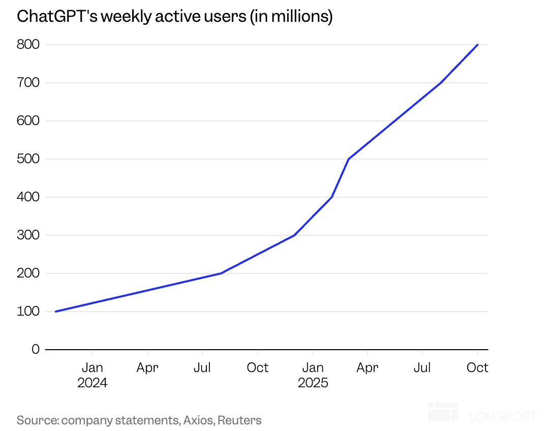 中游 CSP 想削掉上游 GPU 的高昂采购成本,上游 GPU 眼红中游 40% 的利润蛋糕。但若下游需求巨头选择捆绑其中一方,这一方的产业链溢价权自然上升。尤其是当面对拥有 8 亿周活用户的 OpenAI,无论是发展前景还是背后资源实力上,都会吸引芯片巨头锁死利益关系,“一起为梦想窒息!”。