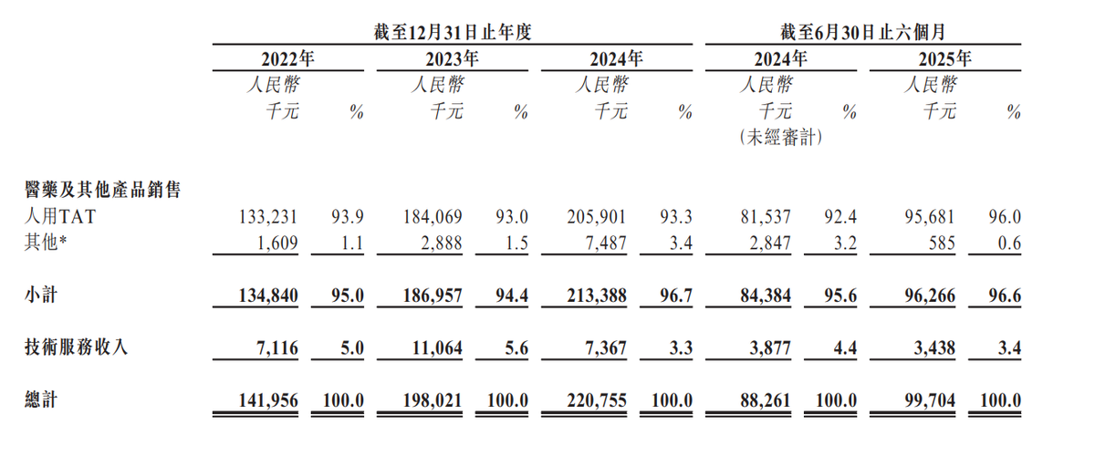 招股书显示,2022-2024年及2025年前6个月,江西生物销售人用TAT产生收入分别占当期总收入的93.9%、93.0%、93.3%%及96.0%。