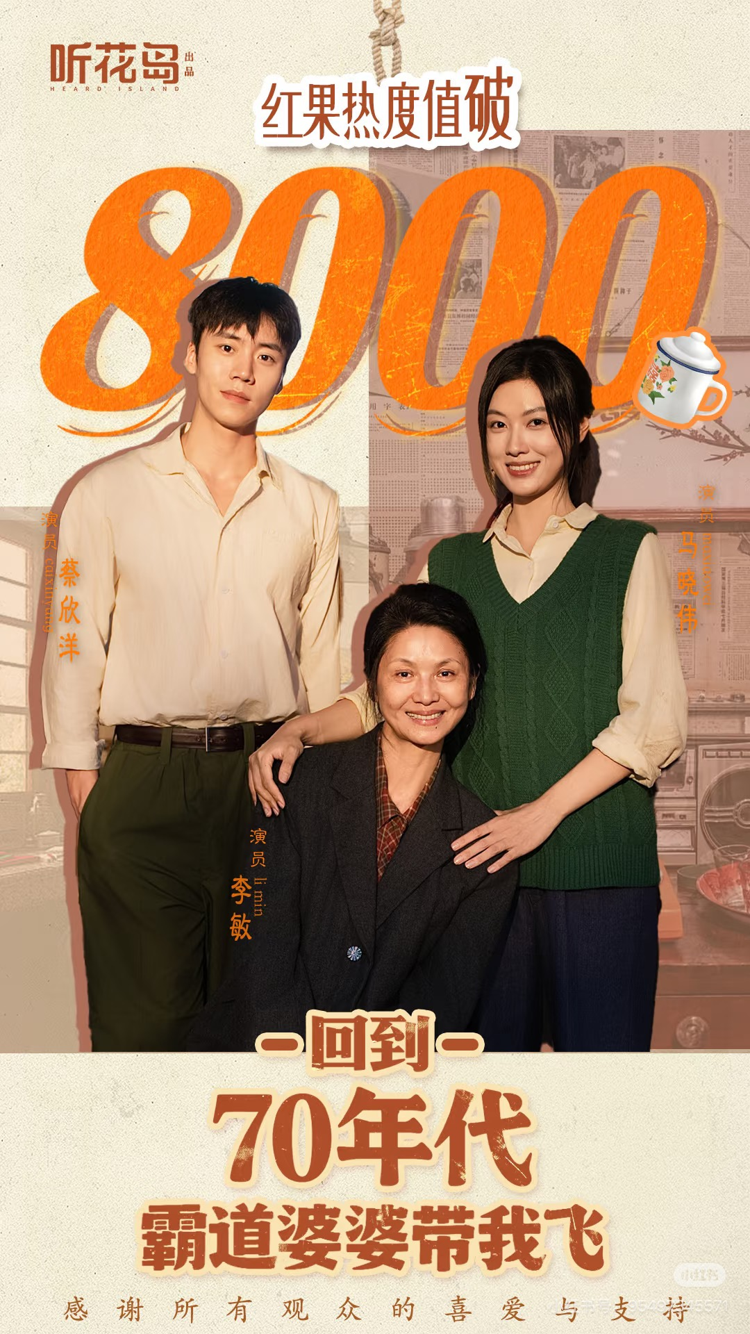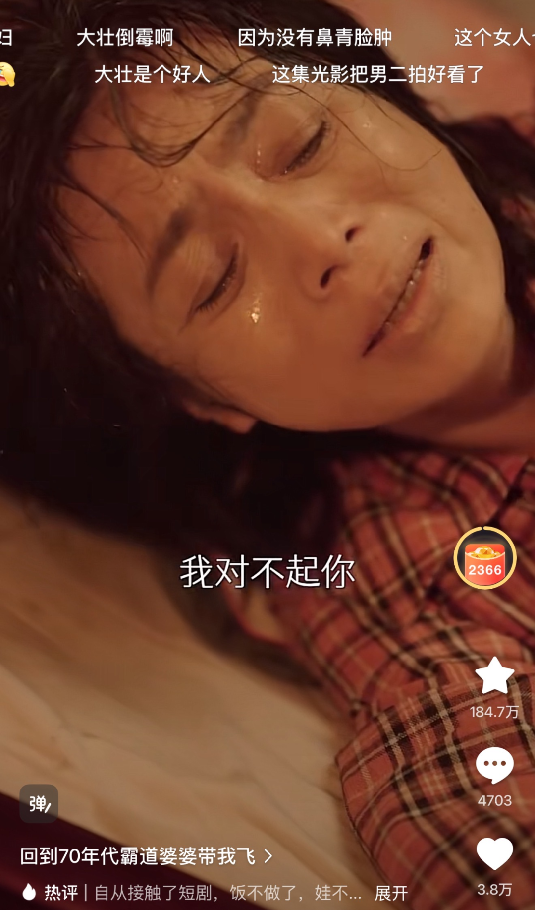 中老年演员价值的重估还体现在角色分量的提升上。在《回到70年代霸道婆婆带我飞》中,婆婆已是实际上的「第一主角」,其风头甚至盖过了男女主。社交媒体上,有关「婆婆扇耳光合集」、「婆婆金句」等内容广泛传播,观众甚至评价「男女主感情戏太少但好磕,不过最爽的还是看婆婆虐渣」。