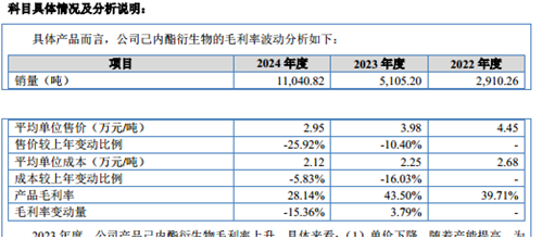 受产品售价持续下降的影响,聚仁新材报告期内的毛利率呈现明显波动,且在2024年出现大幅下滑。具体来看,报告期内,聚仁新材的毛利率分别为41.59%、43.37%、28.6%,其中2024年公司的毛利率同比下滑了近14.77个百分点。