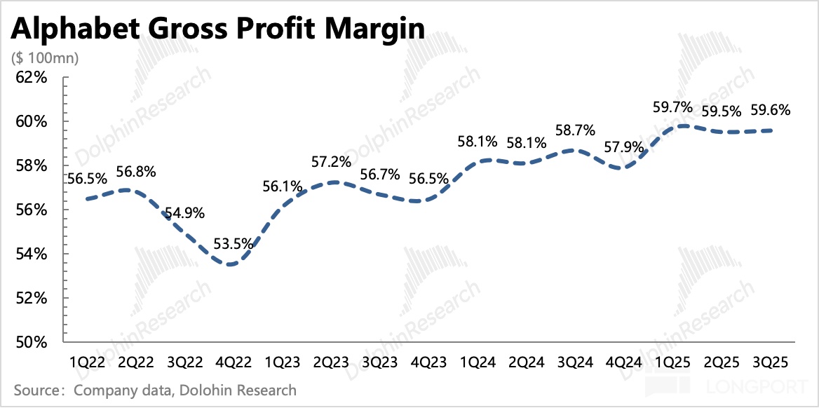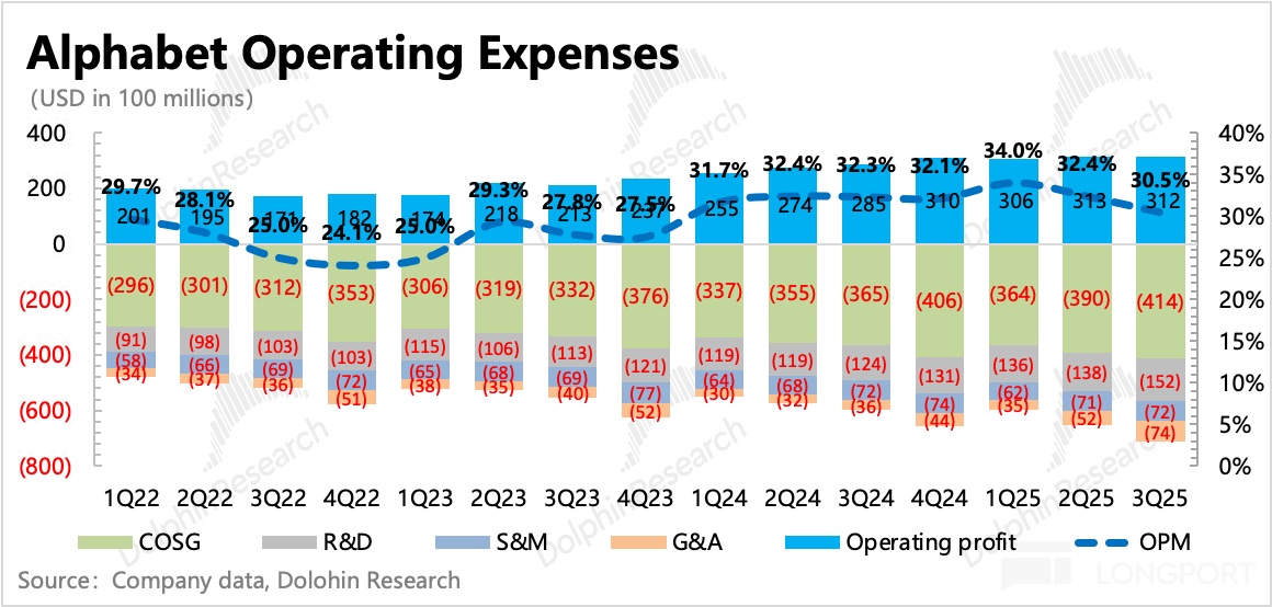 不过谷歌目前这种收入开源,支出上倾向节流的画风,是当下市场比较喜欢的 AI 科技股业绩趋势。