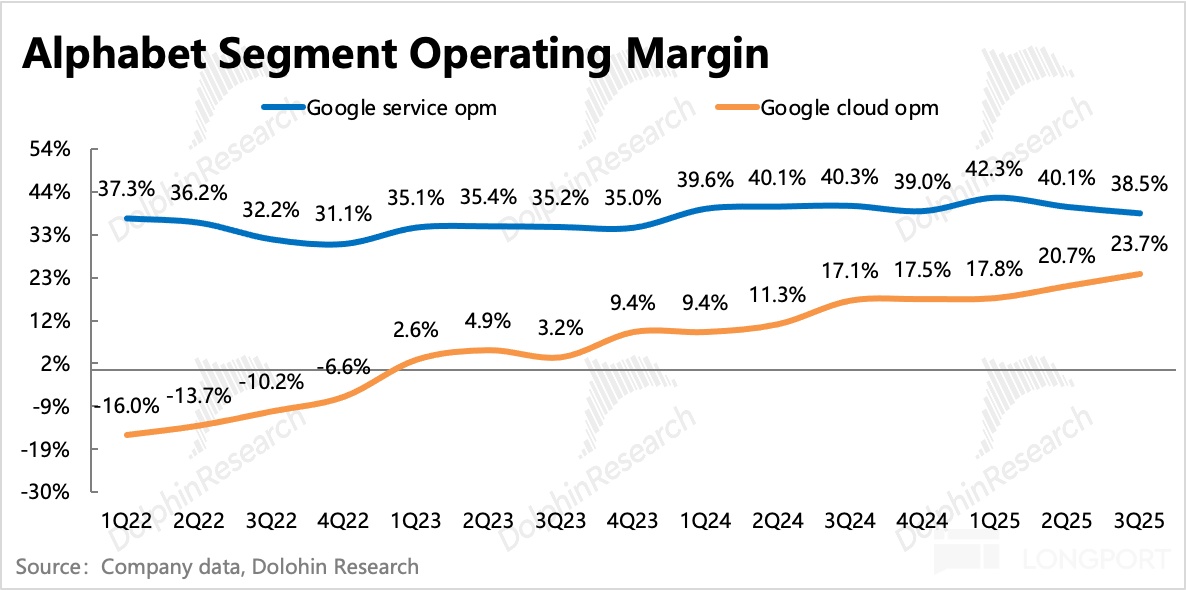 分业务来看,不仅谷歌服务业务环比走高(剔除罚款),云业务利润率也进一步提高至 23%。