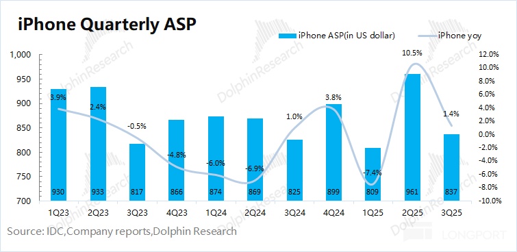 海豚君具体从量和价关系来看,来看本季度 iPhone 业务增长的主要来源: