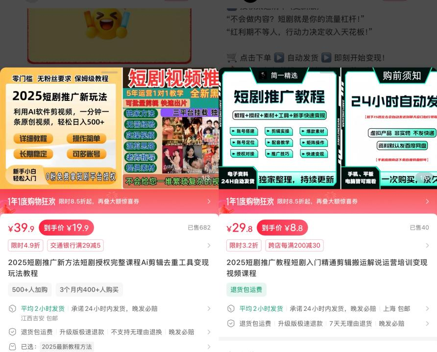 “短剧推广爆单秘籍,7天变现指南,新手也能月入过万。从0到1手把手带你吃透红利期,不只是教程,更是你的变现加速器”“短剧赚钱其实很简单,就是你把短剧的视频剪辑好,发布到平台上,然后挂载短剧或着短剧平台,有人充值或者有人下载APP,你就能拿到分成。0粉短剧推广免费拿授权,详细教程和短剧推广技巧已经整理好了”……