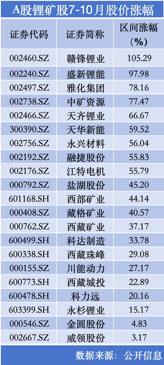 锂价反弹、业绩回暖,反映在二级市场,则是股价的暴涨。