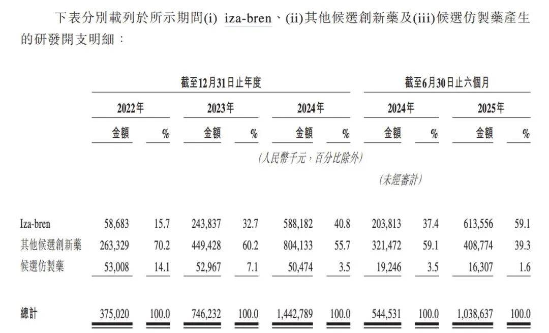 随着临床试验进入高投入阶段,百利天恒的资金消耗显著加快。以最受关注的iza-bren项目为例,2022年时该项目研发开支仅为5868万元,但随着临床研究向后期推进,研发开支在两年时间内翻了十倍,在2024年时达到5.88亿元。