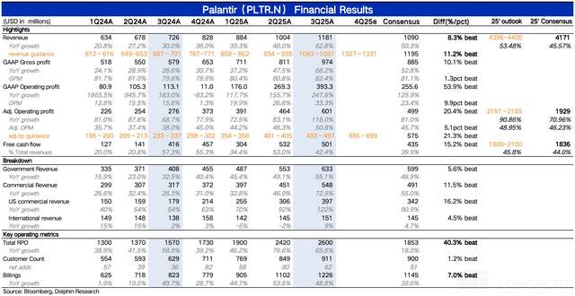 $Palantir Tech(PLTR.US) 于美东时间 11 月 3 日盘后发布了 2025 年三季度的业绩。