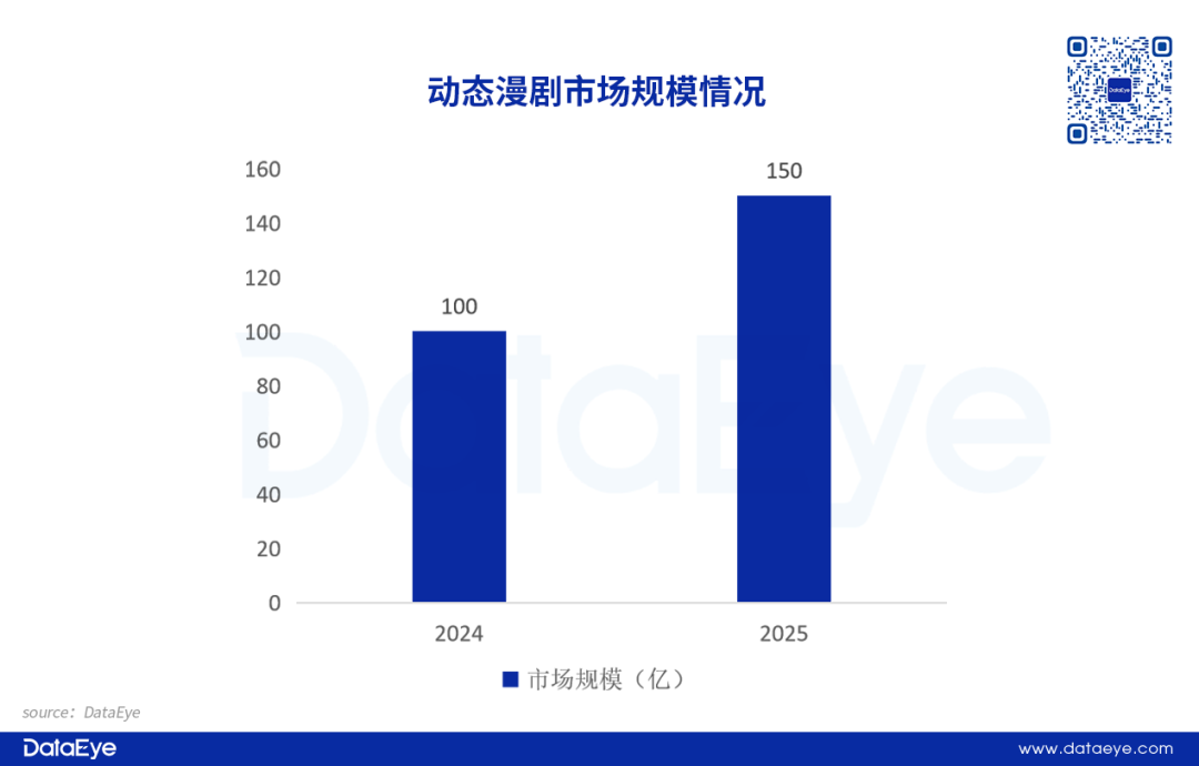 DataEye研究院数据显示,2024年动态漫市场规模已达100亿,而2025年的市场规模预计高达150亿,增速为50%。