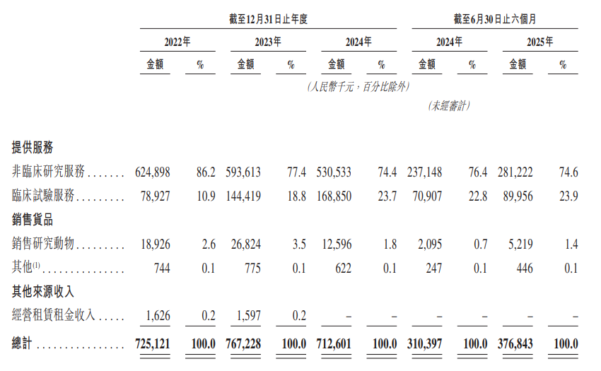 这样的布局下,鼎泰药研的客群规模相应壮大。根据招股书数据,鼎泰药研已为超过700名客户提供非临床服务,为超过130名客户提供临床服务。不过,业绩表现还是渗透出一些寒意。