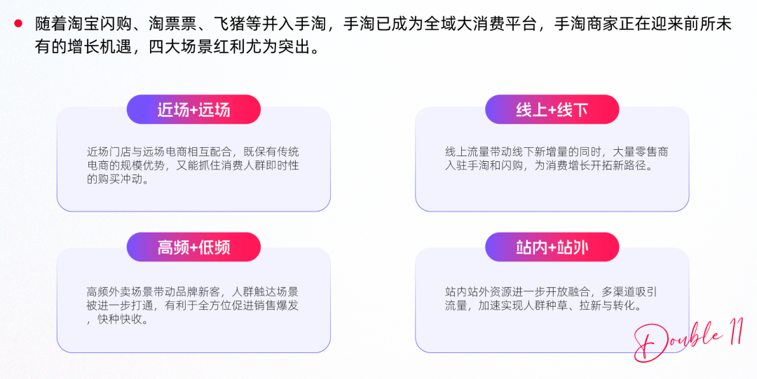 在流量方面,相较于竞争对手,现阶段的淘宝闪购已经形成全场景的流量体系,包括站内与站外、线上与线下,高频与低频,近场与远场。