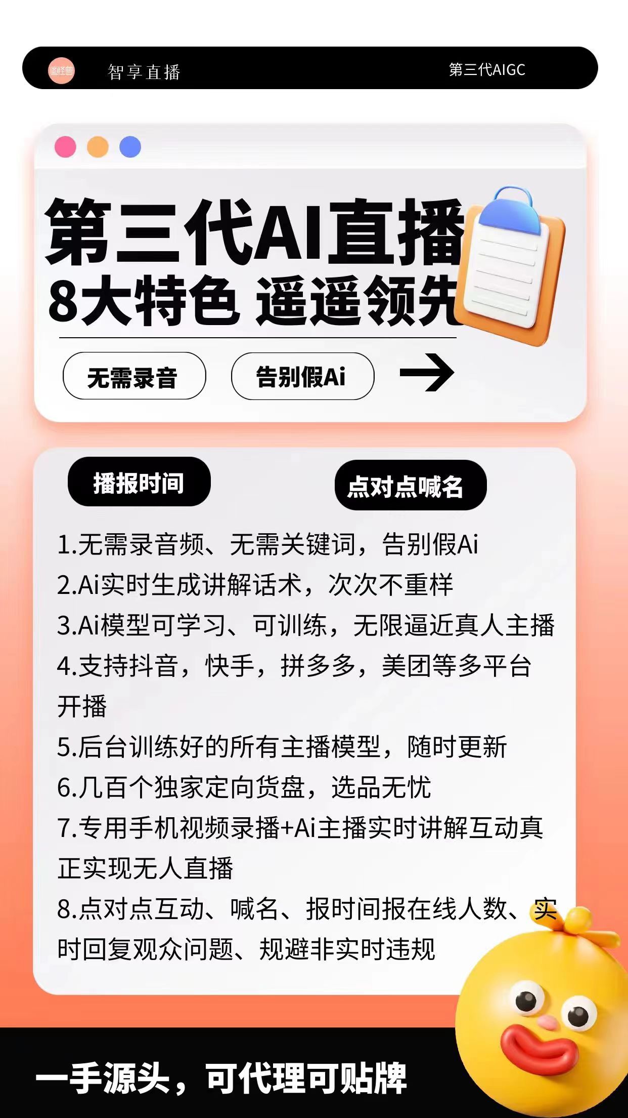 在“智享三代AI 无人直播系统”的营销文案中,甚至表示:已经帮助上千家中小商家实现了 “24 小时无人值守直播”,有卖零食的月销破 10 万,有做美妆的从 “没人看” 到 “日活千粉”。