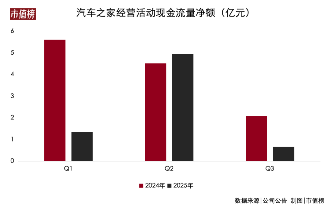 到了2025年,线索服务也撑不住了,上半年下滑幅度在10%上下,第三季度扩大到了近20%,原因是付费经销商数量下滑。