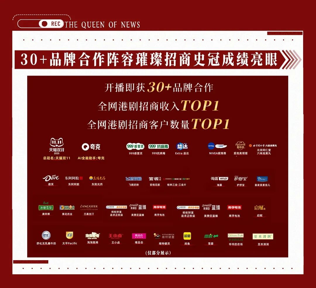 自11月5日开播以来,《新闻女王2》便在商业与热度上展现出强劲势头。商业上,剧集未播先热,开播前便吸引30余家品牌合作,一举斩获全网港剧招商收入与客户数量的“双冠王”。热度上,首播即斩获全网热搜150+,其中微博81个、抖音25个热搜的成绩,印证了其强大的话题效应。