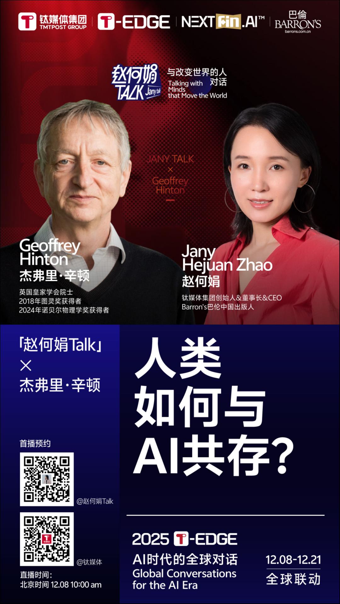 Professor Hinton’s appearance will be featured as a special edition of the “Hejuan Zhao Talk” video podcast—TMTPost’s flagship program known for high-level interviews with global business and technology leaders. This conversation will offer rare insights into Hinton’s views on the ethical and existential questions raised by artificial intelligence, as well as his reflections on the trajectory of deep learning after decades of groundbreaking work.