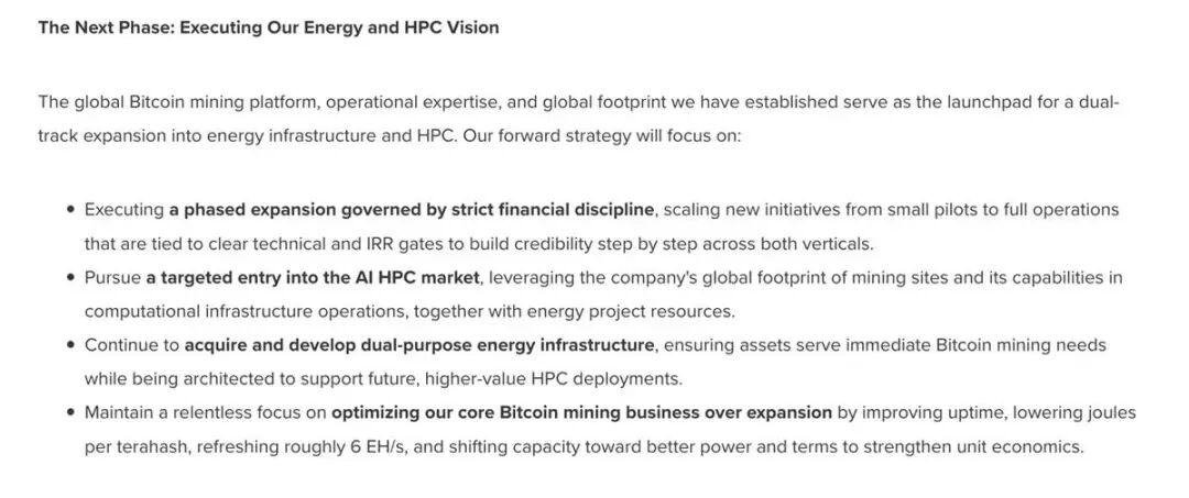 逻辑就是挖矿业务提供可见现金流,AI/HPC提供估值溢价。