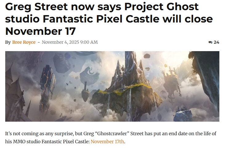 上周,《英雄联盟》原首席设计师Greg Street(鬼蟹)自曝自己领导的工作室Fantastic Pixel Castle将于11月17日关闭: