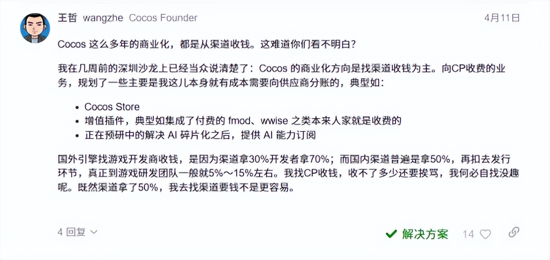 相比其它商业引擎向开发者收费,Cocos过去采用的是向渠道收费为主。以免费开源降低使用门槛,构建开发者生态;通过向渠道和平台提供技术服务实现核心商业化;并借助多元化的工具、插件和行业解决方案来挖掘更深层的价值。