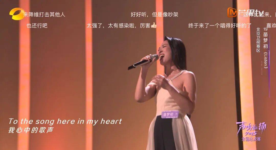 观众的耳朵是“雪亮”的。从《声鸣远扬》首场总决赛直播“音乐剧女王”苗梦初凭一首控制力、爆发力俱佳的《Listen》拿到人气断层的社媒讨论就可看出,在真正意义上的“绝对音乐实力”面前,没有谁不会被好的音乐征服。