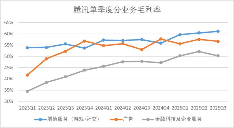 三季度腾讯整体金融科技及企业服务业务录得营收582亿,同比增长10%,市场预期585亿-590亿,也略低于市场预期中值,其中金融科技服务高个位数增长。
