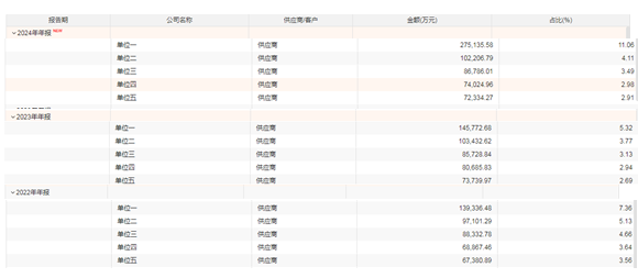 而根据Choice终端提供的明阳智能2022年-2024年前五大供应商采购数据,具体情况如下: