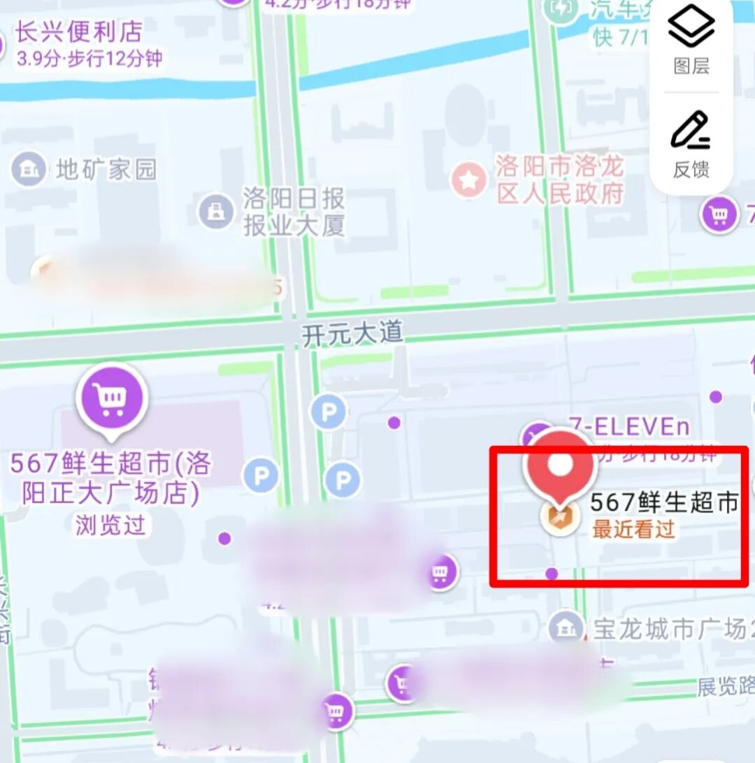 值得关注的是,567鲜生的选址高度集中在洛阳新城区:宝龙广场店与正大广场店均坐落于开元湖周边,距离高铁站约3公里,两家门店甚至仅隔一条主路。