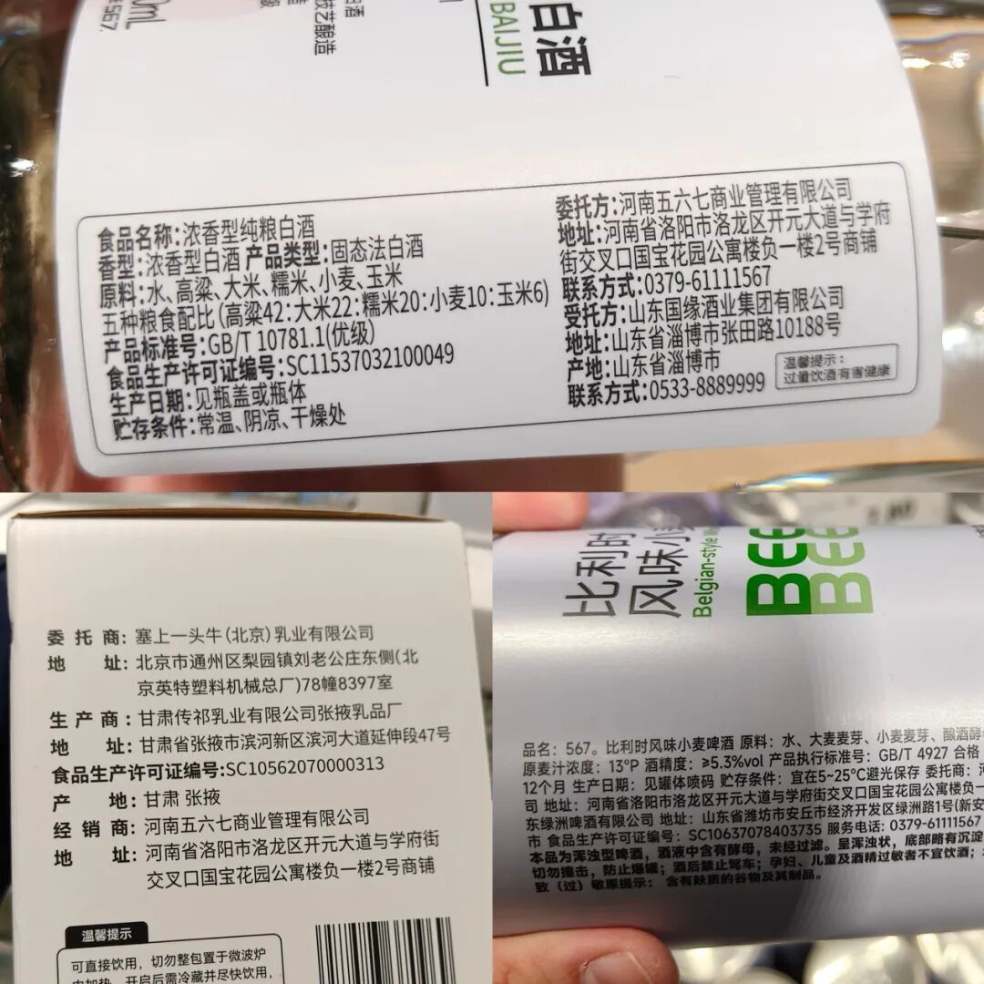 图:567自营的白酒、精酿啤酒、纯牛奶