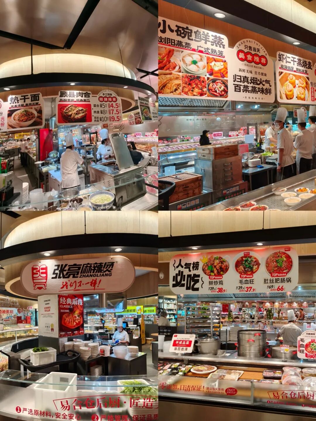 超市内明厨亮灶的烟火气,确实能吸引到不少对品质有高要求的消费者,但仅就餐饮区而言,洛阳市内另一家新商超——易合仓,在餐饮品类、设施布局上更为前沿和丰富。