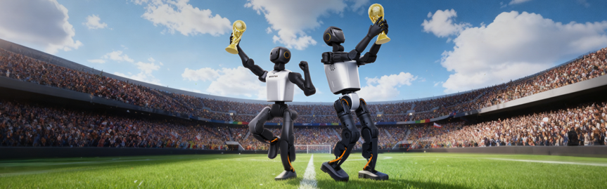 加速进化产品的成功,源于“在单一场景中实现闭环验证”的战略定力。基于团队长达20余年的技术积淀,加速进化选择了一条与众不同的路径——深耕机器人足球高端赛事,并将其做深、打透,高效形成竞争优势。旗下产品Booster T1、K1在RoboCup等国际顶级赛事中屡获冠军,不仅确立了在绿茵场上的统治地位,更成为世界顶尖参赛队伍的“标准装备”。