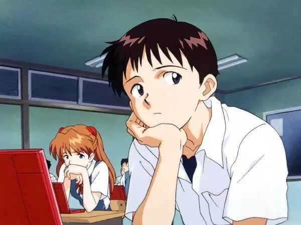 这种人物谱系的开端,其实可以一直追溯到30年前问世的《新世纪福音战士》。这部作品的主角碇真嗣,在极度不情愿的情况下成为了EVA的驾驶员,中间数次逃避战斗、不断否定自己——要知道,同一时期的樱木花道正在篮球赛场大杀四方,这种极丧的风格和彼时日本动漫届的主旋律是格格不入的。