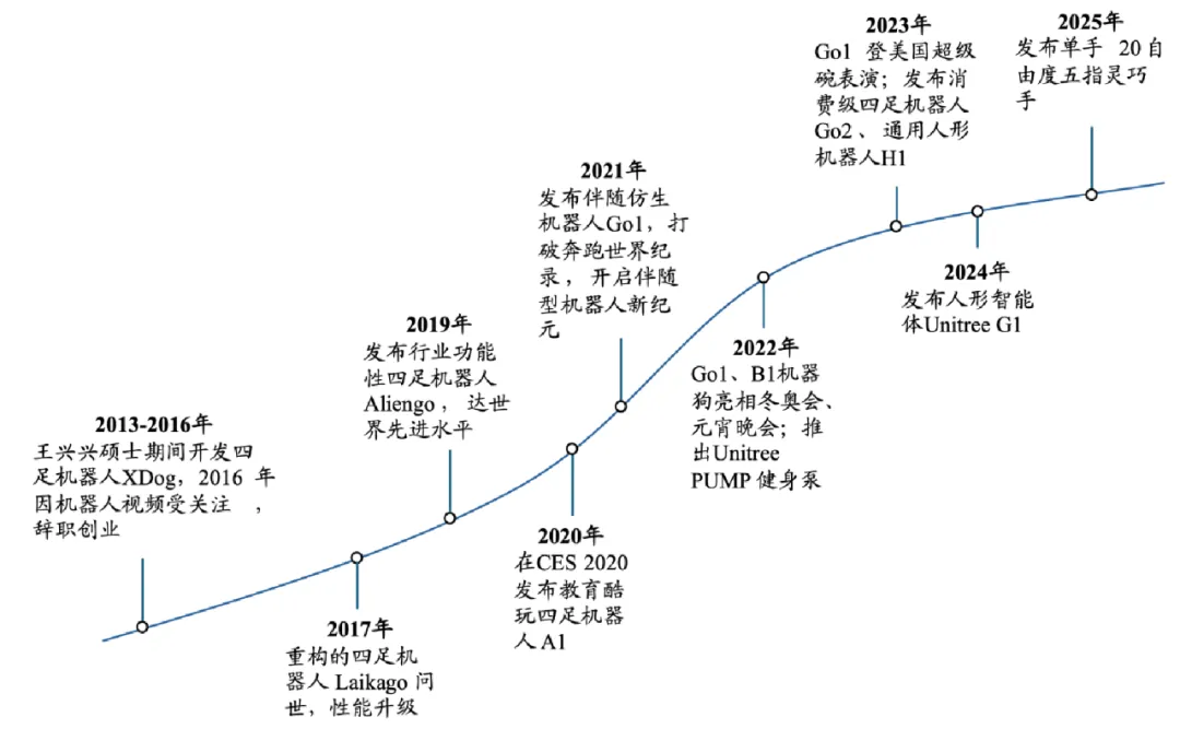 2023-2024年,宇树科技开始进军人形机器人赛道,陆续推出H1、G1两款产品,后者以9.9 万元定价刷新行业,推动人形机器人走向实用化与商业化。
