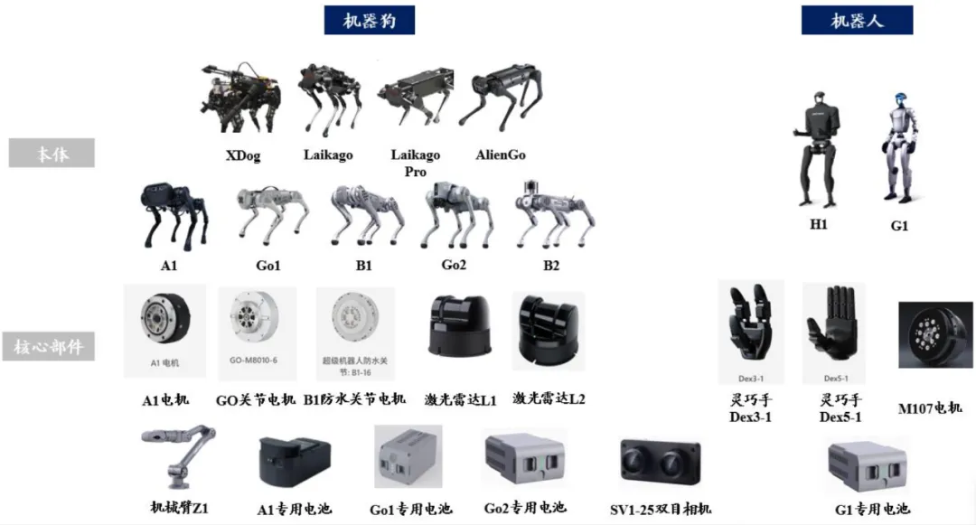 机器狗方面,以XDog为基础,宇树迭代出分别面向消费级和工业级场景的产品。