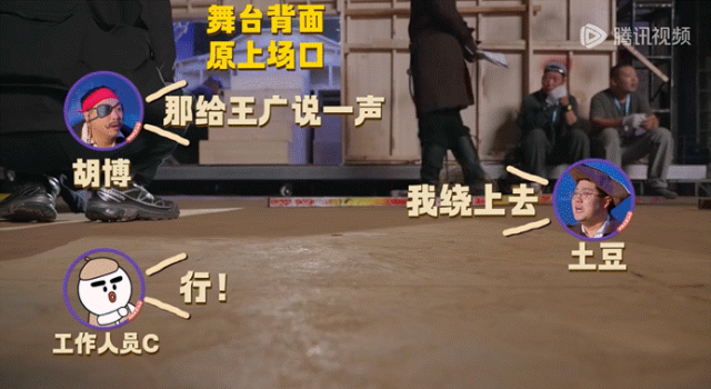 喜剧之神降下了一次即兴考验,而喜剧演员除了接下别无他选。舞台上的三人在帆掉下来后,对视了不足五秒,无声地达成了一个共识:继续下去。在后台候场的八仙子成员们也是如此。蒋易在继续行进动线时,尽力将白帆拨开,让土豆从原定位置上台,其他人则从侧边进入舞台。