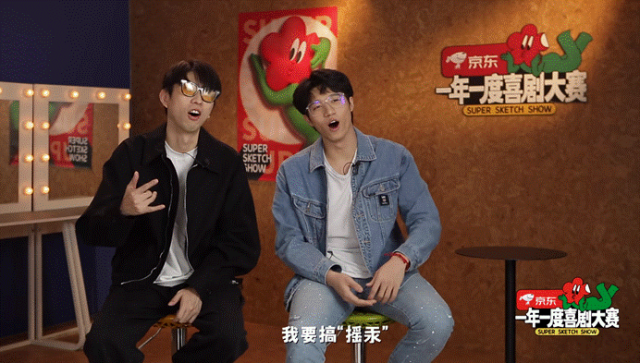 蒋易和孙天宇第一次搭档共同创作剧本,是在经历过淘汰赛后。排名垫底的“十三代宗师”决定把几个小队打散重组,看能碰撞出什么新的火花。两人就这样组合到了一起。等到节目前采的时候,合作了一段时间的两人自我介绍已经成了:“大家好,我们的组合名叫‘我要搞摇汞!’”