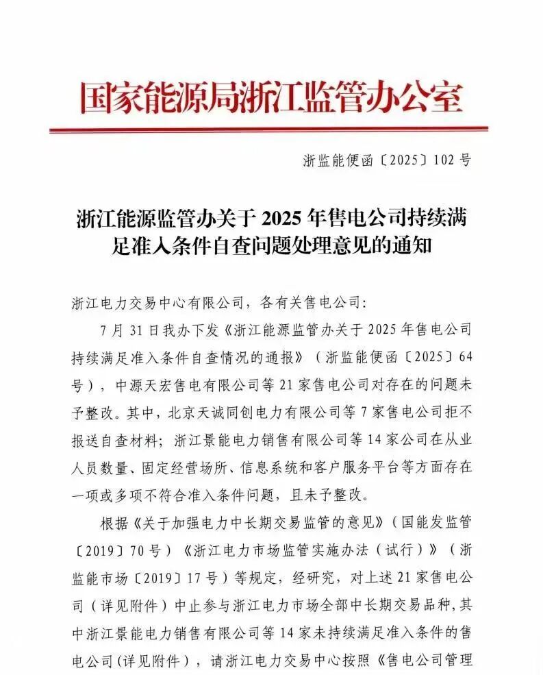 浙江能源监管办一纸通报,21家售电公司被中止参与全部中长期交易品种。这已不是孤例,八月以来,陕西有两家公司因不合理抬高批发交易价格被红牌警告,山西则有8家售电公司被停牌。
