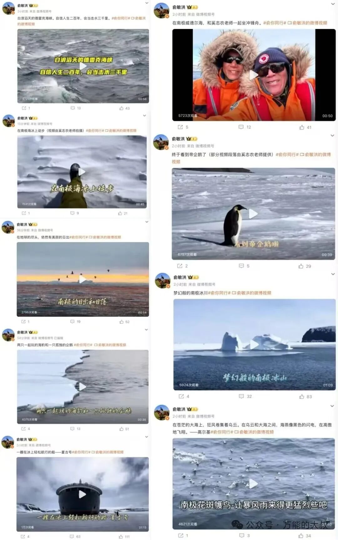 ▲俞敏洪在微博上发了多条视频记录此次南极之旅。