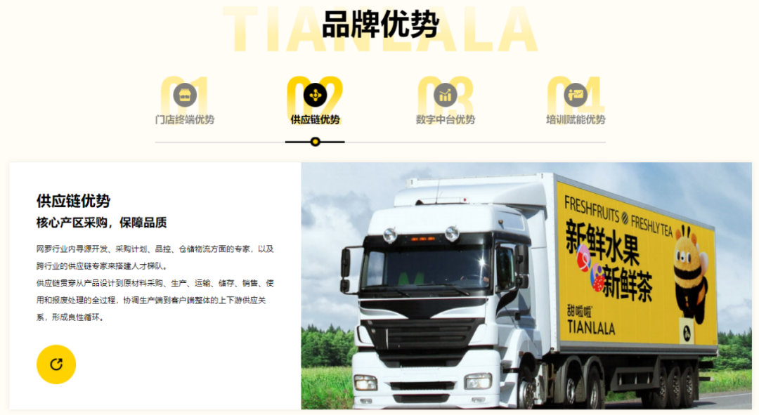 甜啦啦则采取“部分自产+规模化采购”模式,在蚌埠总部设有生产基地,拥有部分原料和包材工厂,多地布局分仓、茶基地及果园,但供应链的覆盖广度、配送时效与成本控制,与蜜雪冰城有着明显的显著。