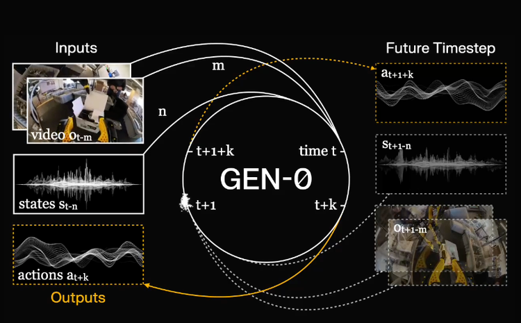 GEN-0的核心特征之一是“和谐推理”(Harmonic Reasoning),即模型被训练成能够无缝地同时进行思考与行动。对于语言模型,在回应前花更多时间思考是可行的,但对于在现实世界中行动的物理系统而言,模型必须即时反馈,反应时间越短,越好。