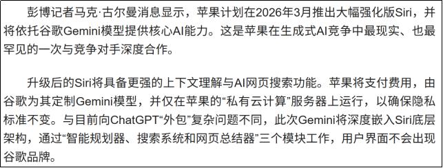 根据最新消息,苹果明年的AI手机,将依托于谷歌Gemini模型的B端能力。我们认为可能只有这样,才能有效利用最强的B端智能+最强的C端智能,形成强强联合的顶尖AI产品,消费者才乐意买单。