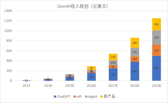 而作为大模型和AI原生应用龙头的OpenAI,作为另外一级,在偏软的应用中,也描绘了对于未来AI应用的畅想——在远期规划的1250亿美元营收中,OpenAI表示自己既要toB又要toC: