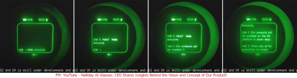 今年年初CES 后,Halliday 发布视频《Halliday AI Glasses: CEO Shares Insights Behind the Vision and Concept of Our Product!》,视频包含手机直拍透视片段,截取画面可以看到,杂散光使文字周围泛光,文字增多时外圈更亮。