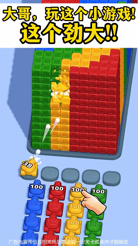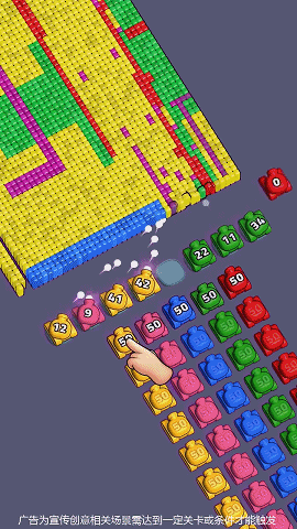 这一类素材主要展示的是立体色块,要求玩家进行设置炮台消灭立体色块。素材主要展现的是色块多的情况,炮台的爽快消灭形成游戏“爽感”,进而吸引更多消除类爱好者的关注。